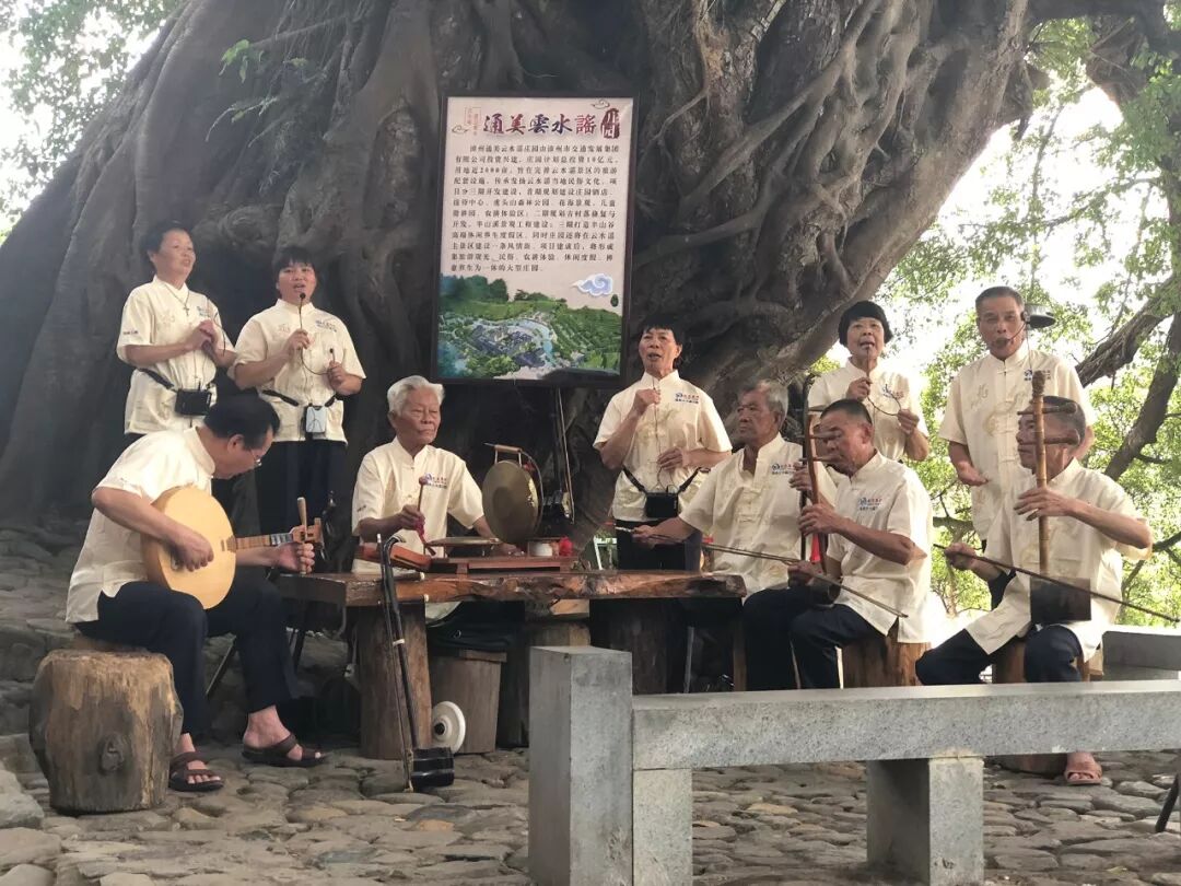 土樓彈唱隊(duì)由通美公司冠名,統(tǒng)一定制表演服裝,并由通美公司提供排練場(chǎng)所;在服裝醒目位置印上交通集團(tuán)和通美公司LOGO;在表演場(chǎng)地放置通美公司項(xiàng)目簡(jiǎn)介牌,宣傳通美云水謠莊園項(xiàng)目,讓游客在享受精彩演出的同時(shí)了解公司項(xiàng)目建設(shè)情況。